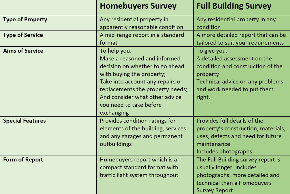 Choosing the right survey will save you money and time, enabling buyers where possible to negotiate a better price, and for sellers to get the best sale price.